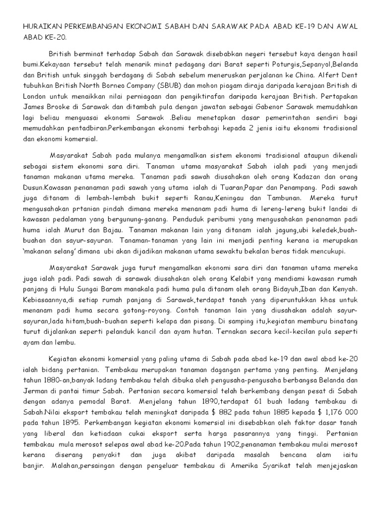 Huraikan Perkembangan Ekonomi Sabah Dan Sarawak Pada Abad Ke Pdf