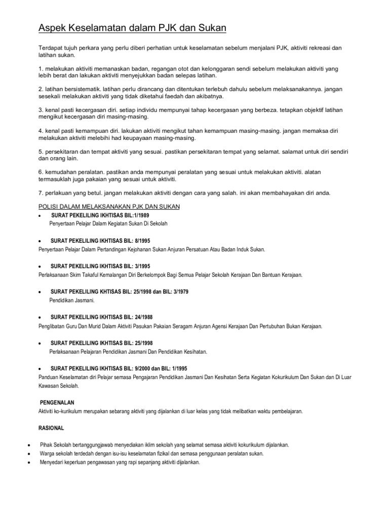 Aspek Keselamatan Dalam Pjk Dan Sukan Pdf
