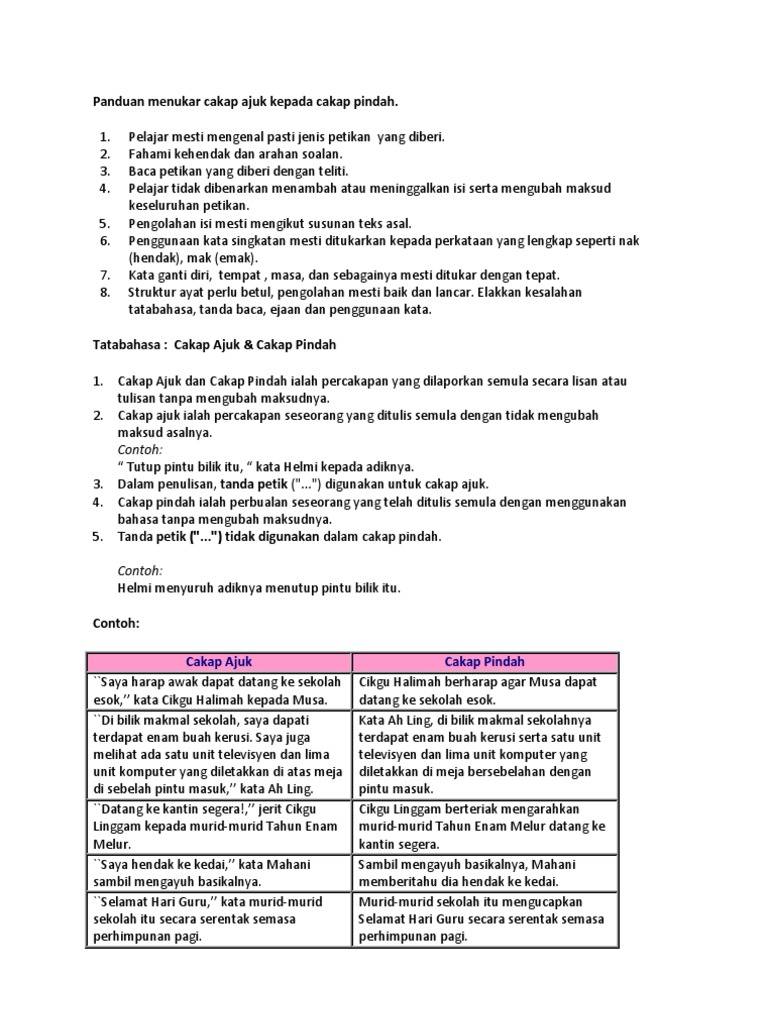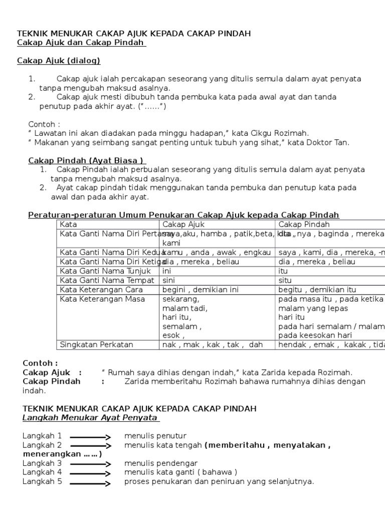 Teknik Menukar Cakap Ajuk Kepada Cakap Pindah Pdf