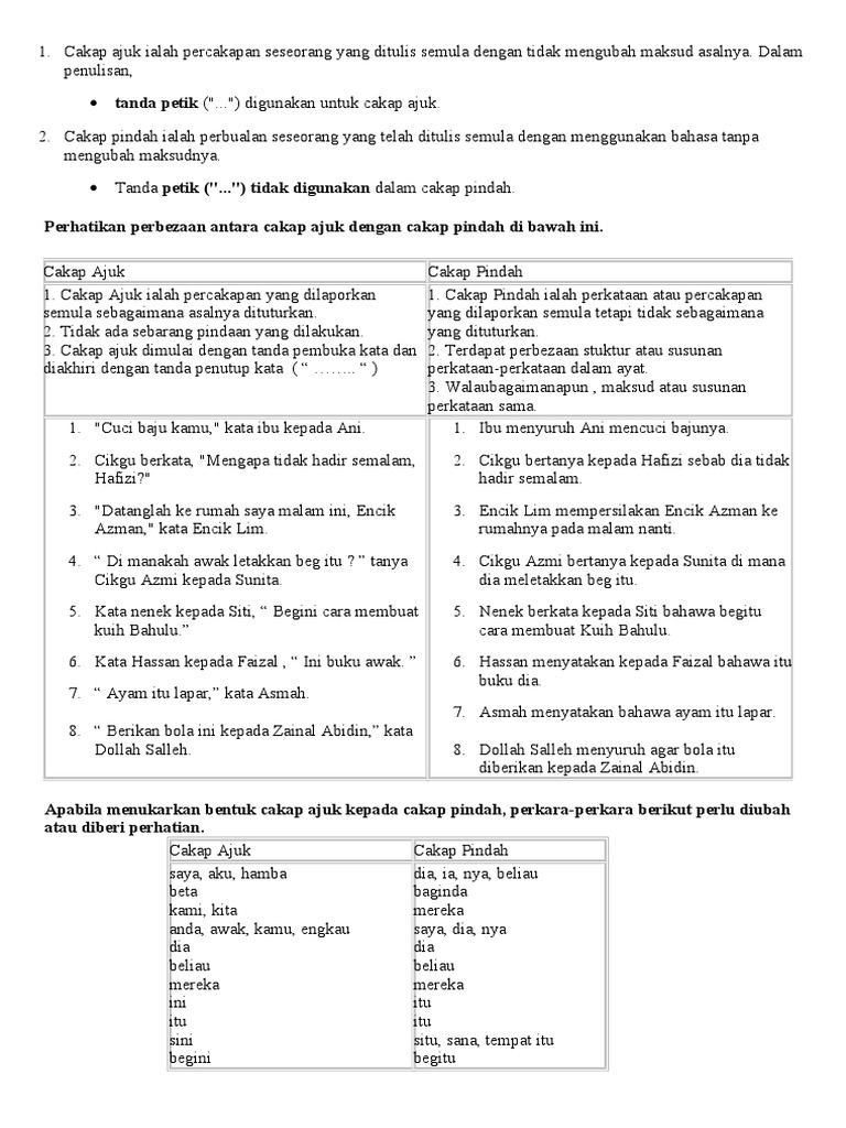 Ayat Cakap Ajuk Dan Ayat Cakap Pindah Pdf